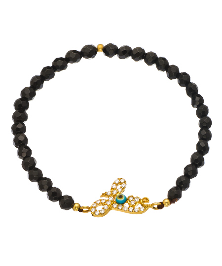 Two amazing concepts are wrapped up in one with this stylish love evil eye bead bracelet from Belair. The word 'Love' is spelled out in bright cubic zirconias with a tiny enamel evil eye as the 'o' and a heart as the 'v', on a strand of stretchable black beads. Draw in lots of love and good fortune with this super adorable piece!