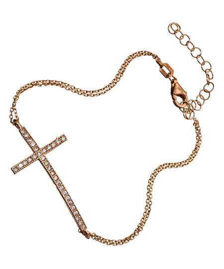 Home > Cubic Zirconia Jewelry > Belair Rose Gold Tone Curved Cross Bracelet