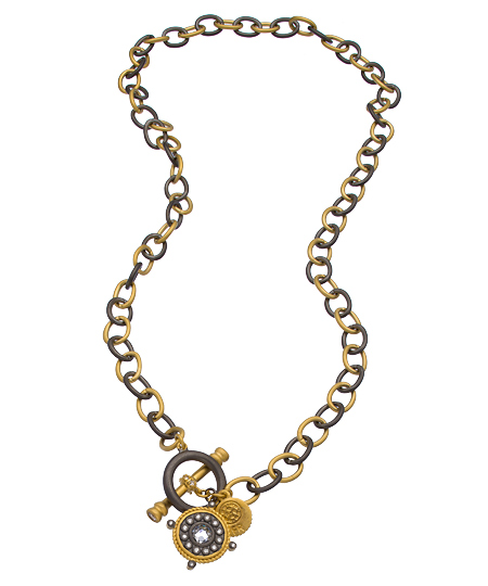 Wrap yourself in sophisticated style with Freida Rothman's mixed metal link necklace. Loose rhodium plated and gold vermeil links lay gently on your collarbone for a look that’s gracious and