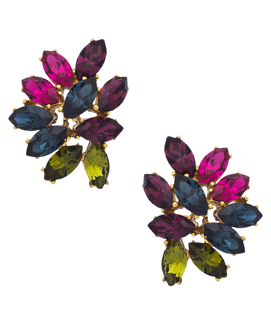 Feminine and lovely, these Ben-Amun gold and multi crystal floral cluster earrings feature a quartet of sparkling beauties: sapphire, amethyst, citrine and clear colored stones coexist in harmony in these elegant charmers, which fasten with a post closure for pierced ears.