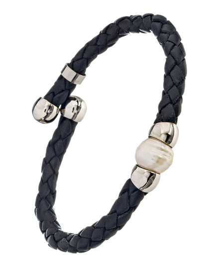This black woven leather bracelet with a freshwater pearl is simple, tasteful and can be worn with anything. It features expertly woven black leather which meets two silver balls on either side of a stunning freshwater pearl.