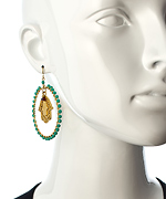 Protection doesn't get much better than these Blee Inara beaded hoop and hamsa earrings. Sizable round, turquoise beaded hoops set the stage for the beautifully engraved hamsa charm, which is itself embellished with a charming evil eye. Earrings have a french wire closure and are available in turquoise, black or white.