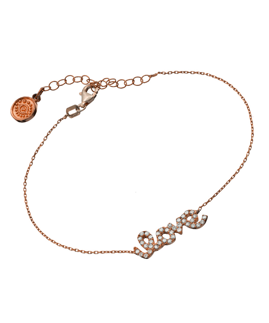The Blee Inara CZ “love” charm bracelet is among the most sought after items. No wonder, with its delicate chain, generous extender and sparkling charm. Available in your choice of gold, rose gold or silver, please specify metal choice when ordering. Bracelet fastens with a lobster claw clasp.