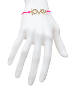 Some days, you just feel like making a statement. Let Blee Inara's glitter 'Love' charm string bracelet be your partner. Gorgeous crystals in the form of 'love' add instant luxury with a sparkle and shine that's hard to miss. It comes in your choice of hot pink, red, purple, or black.