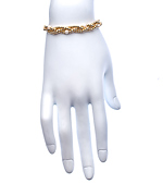 Three strands of gold beads are adorned with lustrous pearls and twisted for maximum impact in this Blee Inara gold and pearl twisted bracelet. Beautiful enough to accessorize your wedding gown, subtle enough for Casual Friday, you will love owning this beautiful piece. Bracelet has a spring clasp closure.