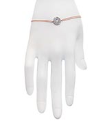 You'll love this Blee Inara rose gold and Swarovski crystal circle double chain bracelet. A double length of silky smooth rose gold chain wraps your wrist and showcases the striking round, Swarovski crystal studded disc in the center. Bracelet fastens with a spring clasp and features a generous extender.