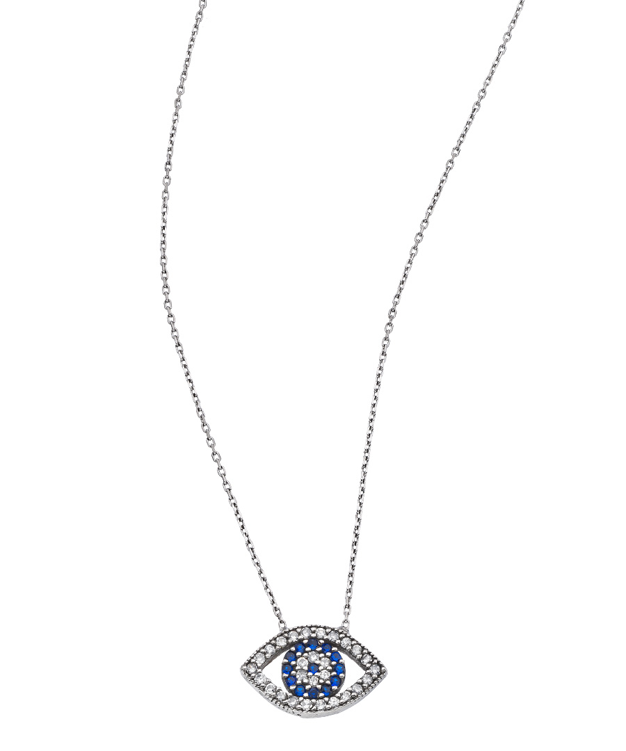 All eyes will be on you when you wear this silver and CZ evil eye pendant necklace from Blee Inara. The sterling silver chain showcases the evil eye pendant wonderfully. It's a lovely way to embrace the here-to-stay evil eye trend. Necklace fastens with a spring clasp.