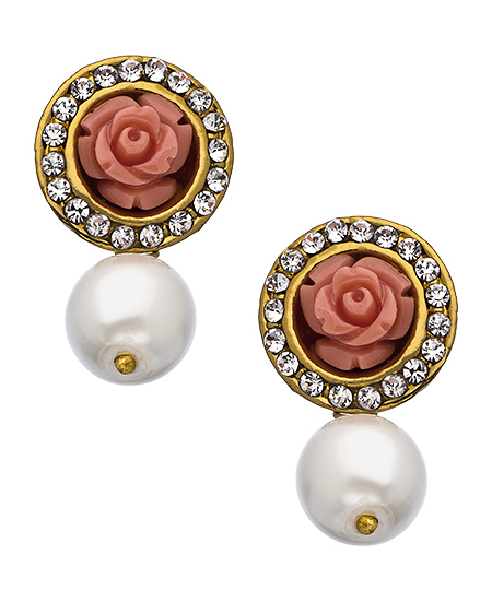 turquoise floral fantasy earrings from Blossom Box are a timeless beauty. The delicate drops feature cultured faux pearl drops and roses surrounded by a border of