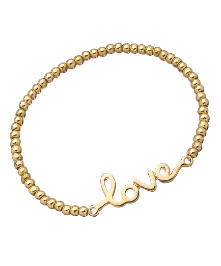 Whether you prefer gold, silver or the feminine hue of rose gold, you've found the perfect everyday accessory in this beaded 'love' stretch bracelet from Blu Bijoux. Tiny beads surround the 'love' script in this bracelet that stretches to provide the perfect fit. Please select gold, silver or rose gold when ordering.
