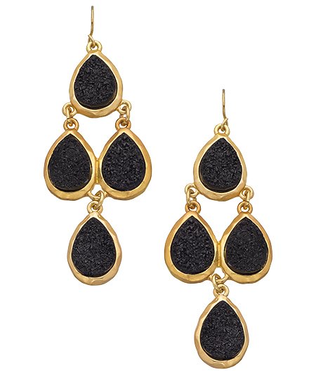 All eyes are on you when you put on these gorgeous black druzy chandelier earrings from Blu Bijoux.