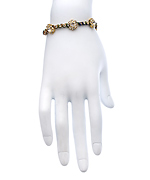 Peeking out from your cuff, or worn alone on your bare arm, this Blu Bijoux blue, green and brown braided bracelet with crystal flowers is the epitome of versatility. Woven into the cord are small crystals, which separate the crystal flowers. The bracelet features a fold over clasp.