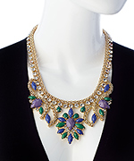 With the beautiful emerald sapphire crystal bib necklace from Blu Bijoux, you're bound to capture the attention of all! This bold necklace features blue, green, and plum resin stones on a textured link lined with sparkling Austrian crystals. Whether at the office or ladies night out, you'll look amazing!