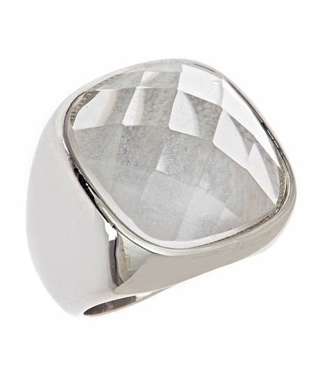 Blu Bijoux fly's eye crystal ring is stunning. A gorgeous translucent Austrian crystal sits on top of your finger with a multi-faceted surface that resembles a fly's eye. The stone is set in a shiny silver plated band that is highly reflective for a sensational look. This ring measures 7/8 inches wide on your finger.