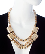 This rich and luxurious gold and brushed gold chain bib necklace from Blu Bijoux is surprisingly accessible - as well as the golden component that pulls your look together. The interesting hollow serpentine chain and brushed gold enhancements set this beautiful necklace apart from all the rest. Necklace fastens with a lobster claw clasp.