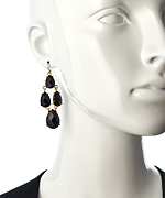 Faceted, jet black, teardrop stones are bezel set dangle seductively from your earlobes in these Blu Bijoux gold and onyx teardrop chandelier earrings. Quality craftsmanship makes these beautiful earrings look as though they cost much more. Earrings have a french hook closure for pierced ears.