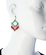 Wear these Blu Bijoux gold, crystal, mint and coral chandelier earrings and unleash your inner free spirit. Mint diamond shapes support coral danglers and are embellished with sparkling Austrian crystals for a unique, beautiful look. Earrings fasten with a french wire closure for pierced ears.
