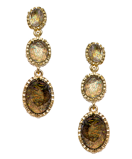 The golden color of the crystals in these Blu Bijoux gold filigree and crystal triple drop earrings rivals the intricately textured gold bezels that surround them. The effect is sleek and sophisticated, and versatile enough to pair with many looks. Earrings have a post closure for pierced ears.