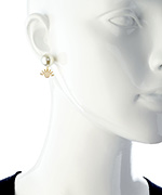 Emit a girly glow when wearing these gold pearl Effy ear jackets by Blu Bijoux. A gold plated loop curves from the back of the earlobe to the front with a funky, cool fanned out design. A large pearl frames the front of the ear jacket. This trendy look can make any outfit look street style ready.
