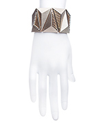 fun and fabulous gold triangle cuff bracelet from Blu Bijoux. The geometric bracelet flaunts gold plated triangles on a stretchable band for easy slip on style. The fashion-forward design is the