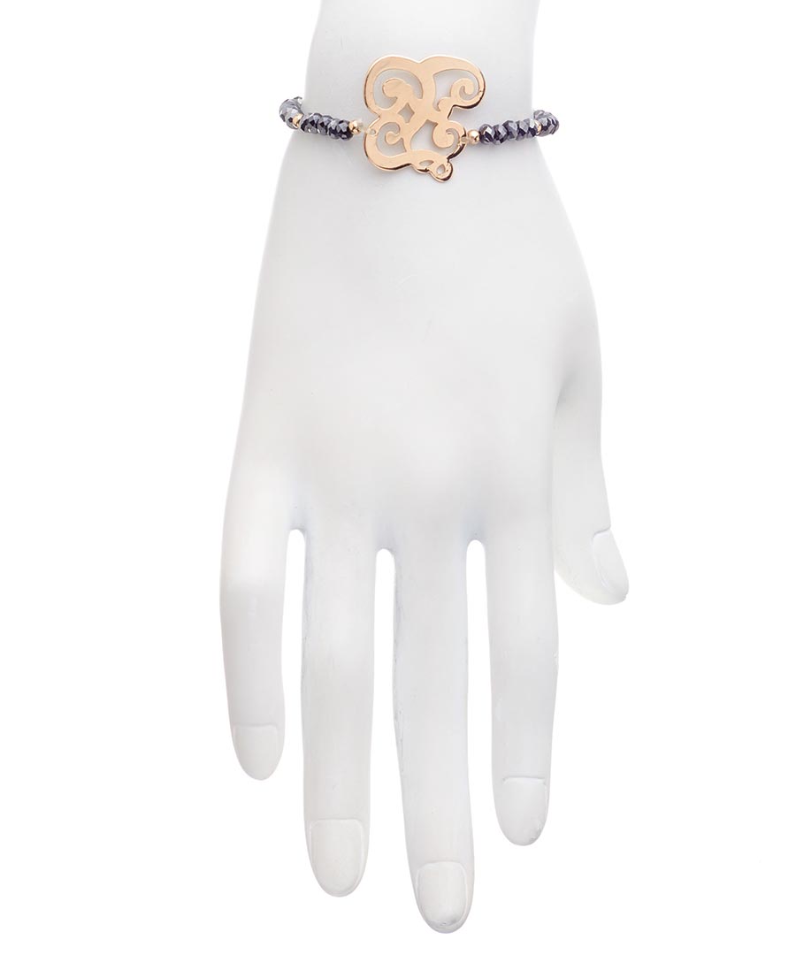 Make a strong fashion statement with this Blu Bijoux gold vermeil and Austrian crystal initial pendant bracelet. Hand-crafted in gold plating over sterling silver, the gleaming disc is engraved with your choice of A, E, J, L, M or S - then finished with sparkling crystal stones. Bracelet fastens with a sliding clasp closure. Please select initial when ordering.