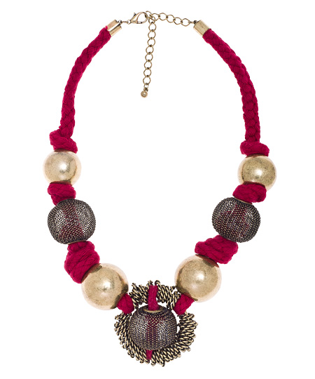 Exude confidence in this shamelessly immodest grand red mesh necklace from Blu Bijoux. The red rope necklace is stylishly dressed with extraordinary gold plated round and mesh bulbs. Lobster claw closure.
