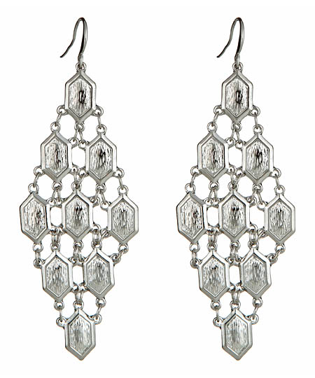 The Blu Bijoux honeycomb earrings will make a sweet addition to your fashion jewelry collection. Links of small textured silver-plated hexagons are chained together to form the larger diamond shape. These earrings have ear wires for pierced ears.