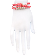Round coral and translucent white beads showcase crystal encrusted spheres in this set of three gold, crystal and coral beaded bracelets from Blu Bijoux. Beautiful as your pop of color, perfect as your finishing touch - these bracelets look great whether stacked or worn alone. Bracelets stretch for the perfect fit.