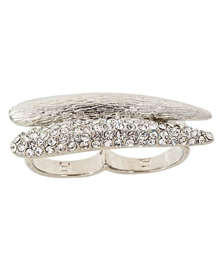 Drape your fingers with this silver talon double ring by Blu Bijoux. The beautifully crafted silver plated double ring has two talons designed on the front. The bottom talon is smooth while the top talon is dressed in clear Austrian crystals.