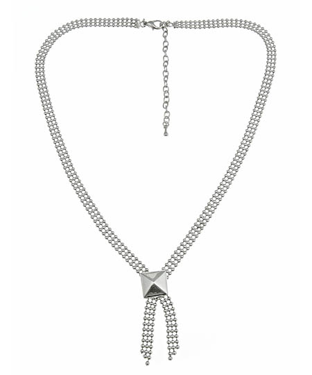 The Blu Bijoux silvertone pyramid pendant necklace is a polished piece with urban edge. The triple beaded chain is accented by a bold silvertone pyramid. This trendy necklace fastens with a lobster-claw clasp.