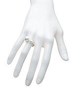Pearls are back in session, showing that they, too, can be cool. Blu Bijoux's Small Pearl Ring features a duo of pearls at the ends of an open ring providing a floating fantasy on your fingers and a truly modern twist on the old classic. Ring band is delicate and thin.