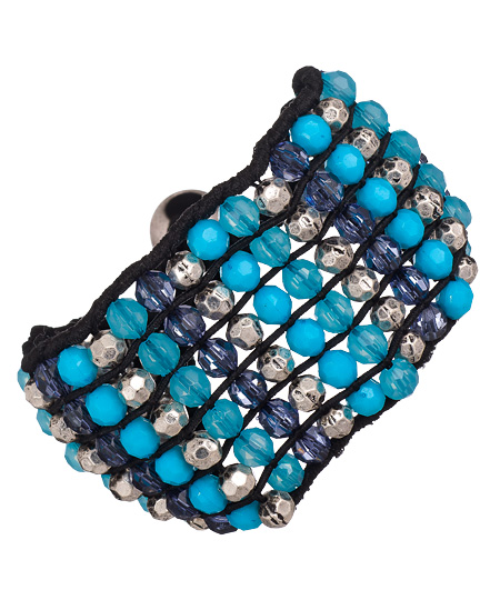 There's something calming about this turquoise beaded stretch bracelet from Blu Bijoux. Accented with blue and silver tones, this reserved piece is perfect for everyday wear. Stretch and fasten close by pulling the large bead through the hoop.