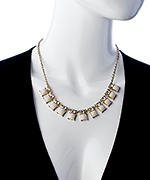 Make the white geometric mini bib necklace from Blu Bijoux your signature statement topper. Ivory squares are topped off by Austrian crystals that add a bit of fun to your fashion favorites. The everyday wearability of this necklace makes it a jewelry box must-have.