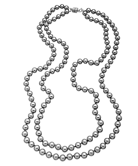 Your ensemble could use an elegant update so top off your look with this majestic silver pearl necklace from Boyer New York. A double strand of shiny silver pearls come complete with a magnetic closure for easy wear. The
