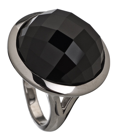 Strut you stuff in this onyx cocktail ring from Brian Danielle. The ring is fashioned from sterling silver with a band that splits as it reaches the top. At the top, a round faceted onyx stone is brilliantly bezel set within the piece for a look that's fashionable and sleek.
