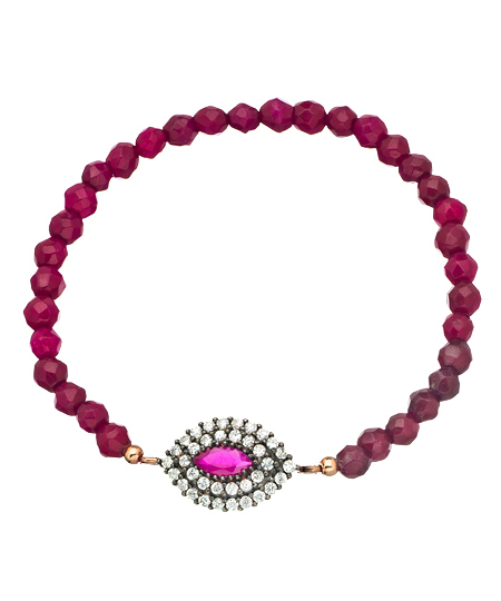 The evil eye has never been more attractive than in this carnelian and CZ marquise evil eye stretch bracelet. If red is your color, you must have this beautiful bracelet! Deep, limpid carnelian beads, and the striking evil eye of concentric ovals and a large red center stone deliver the drama!