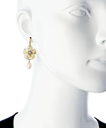 Elegant enough for the bride, understated enough for everyday, these Carolee gold and crystal flower and pearl drop earrings make the fashion statement you want. Sumptuous gold petals are enhanced with sparkling crystals and support the beautiful pearl drop. Earrings fasten with a french wire for pierced ears.