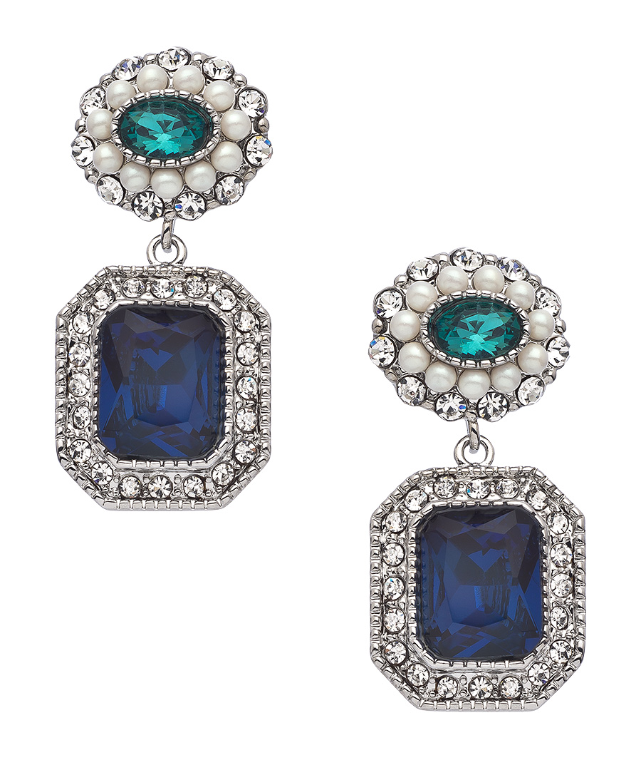 The classic regal reflection peacock ornate double drop earrings from Carolee are breathtaking. Featuring clear crystals, colorful glass stones, and simulated pearls, you’ll want to wear your hair up when you showcase these dazzling stunners. The earrings include stainless steel posts for pierced ears.
