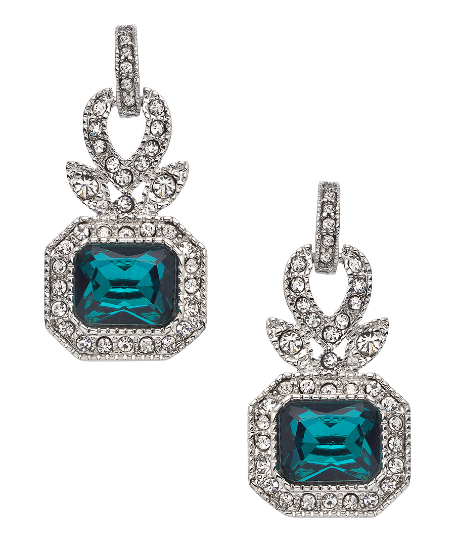 You'll be decked out to dazzle wearing the regal reflection teal rectangular drop earrings from Carolee. Teal glass stones are are highlighted with glittering clear crystals to grab extra light for that added shine! Change up your evening look even more by adding soft glam waves around the face.