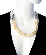 Treat yourself - or someone else, with this Carolee silver and pearl collar necklace. Exquisitely designed and artisan crafted, this gorgeous collar is guaranteed to elicit many “ooohs’” and “ahhhs” from your social set. Necklace fastens with a lobster claw clasp and features a generous extender.