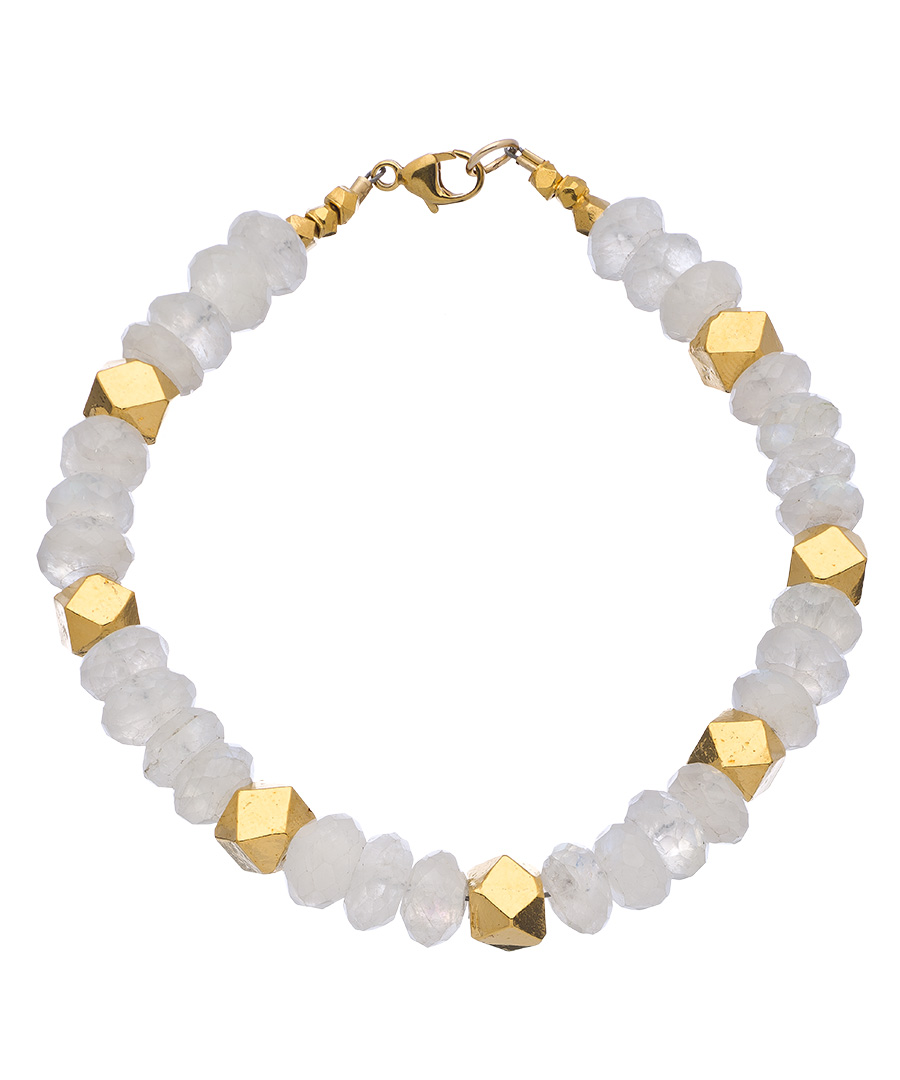For the perfect accessory to match your sophisticated style, pair this Catherine Weitzman gold and moonstone wide stripe bracelet with your favorite casual, business or party attire. The luminous moonstones complement the 18k gold vermeil for a luxe look that adds flair. Bracelet fastens with a lobster claw clasp.