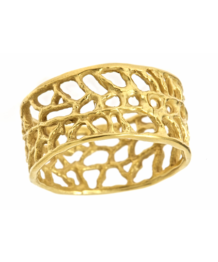 Catherine Weitzman gold coral reef ring is amazing. Update your fashion jewelry collection with this inspired-by-nature 18k gold vermeil ring. Carved to resemble coral reef-like structures, the band measures 3/8 inches wide on your finger. Ring is available in whole sizes 5-9. This piece is a must-have in your fashion jewelry collection.