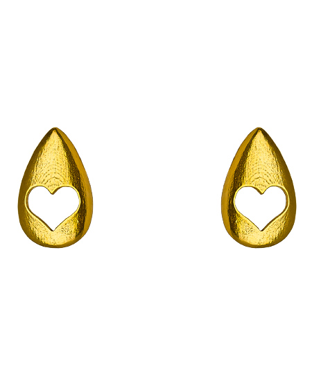 Perfect for your more modest looks, the plancette post earrings from Catherine Weitzman are absolutely lovely. The teardrop shaped earrings are embellished with a heart shaped cutout in the center. These earrings fasten with post back closures for pierced ears.