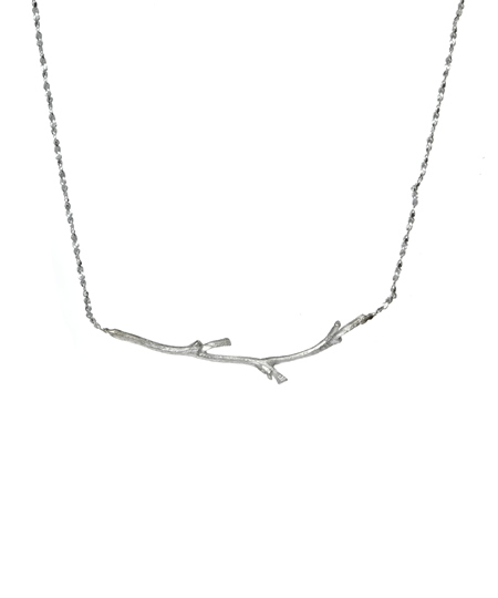 Catherine Weitzman silver branch necklace is a gorgeous addition for your fashion jewelry collection. A sterling silver branch features tiny twig shoots jutting out from it. The slender 2 inch wide branch pendant is suspended on a luminous sterling silver chain that measures 14 inches long for a total necklace length of 16 inches. Necklace fastens with a lobster claw clasp.