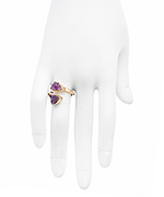 This Charlene K pink and pink druzy ring is the ultimate feminine accessory. Two stunning pink druzy stones are handsomely bezel set in a freeform, textured gold design. Add a scintillating pop of color to your favorite looks - from casual to dressy. Ring is adjustable for the perfect fit.