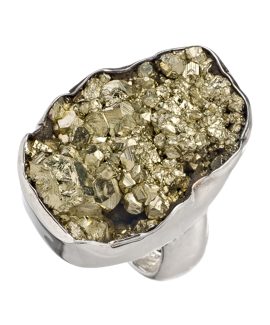 This silver rocky pyrite geode ring from Charles Albert is what we like to call marvelous. The large sterling silver ring has a distinctive style that will surely add a bit of unexpected glamour to your look. Try it on for size and you may never want to take it off.