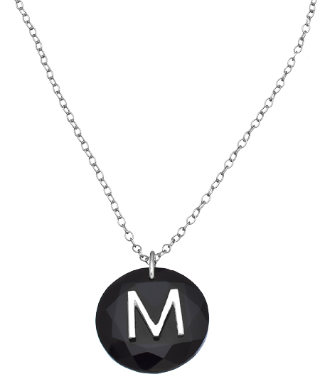 The silver onyx personalized initial necklace from Charmed Circle is made especially for you. It features your initial in a refined sterling silver Arial font on a round cut onyx. The gemstone hangs beautifully on a sterling silver chain.