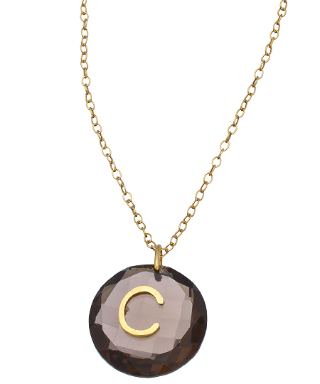 This smoky quartz personalized initial necklace by Charmed Circle is a gorgeous accessory. The letter of your choosing is displayed in Arial font on the pretty round cut gemstone. And the pendant necklace adds zest to your ensemble!