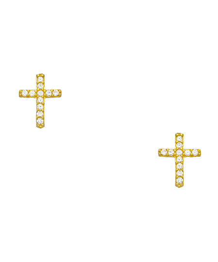 Although they are miniature in size, these CZ cross stud earrings are brilliant. They feature a petite cubic zirconia cross fashioned in sterling silver or gold vermeil. The earrings are a perfect stylish expression of your faith. Made in Turkey.