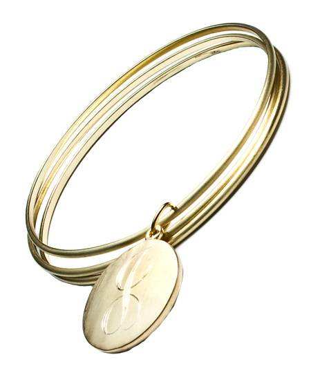Don't miss out on the 3 bangle initial charm bracelet from Danielle Stevens. Three thin bangles have been combined together to produce one fabulous piece. A disk charm is the focal point and can be engraved with the letter you choose.