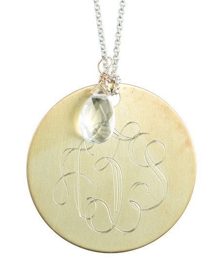 Danielle Stevens brings you this exquisite gold monogram disk and charm necklace on a silver chain. The gold disc is adorned with a delicate charm for a beautiful finishing touch. Select three initials for engraving, and remember, the surname initial goes in the center. Necklace has a lobster claw clasp.